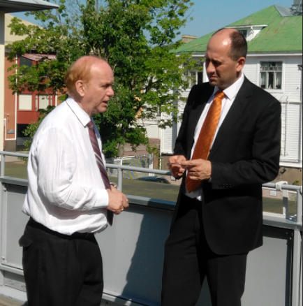 Per säger: Företagandet är en förutsättning för att samhället skall fungera. Dessutom är företagandet en kraft av rang som innehåller människor med energi och förmåga, och ofta även ekonomiska resurser. Dessa måste få bli en del av lösningen på de problem vi har framför oss. Vi har INTE råd att kasta bort den delen av samhället. Självfallet finns det oetiska personer och verksamheter inom företagsvärlden, men dels får detta inte stoppa oss från att använde de positiva krafterna här och dels måste vi vinna över så många som möjligt på vår sida. Att bekämpa det som är dåligt måste naturligtvis fortfarande finnas kvar. Bilden, ovan, Per i samspråk med Ordförande i Ålands Handelskammare.En stor kraft finns bland småföretagarna. Idag är det ofta för krångligt rent byråkratiskt att vara småföretagare. Detta måste förenklas, för en företagare skall inte behöva använde en stor del av sin tid åt det byråkratiska. I den digitala åldern bör vi kunna finna lämpliga enkla och nästa automatiska system för detta.